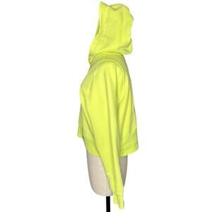 Women's neon yellow green loungeful cropped hoodie sweatshirt from Lululemon in size 12. There's a few spots of discoloration on the front and minor fade/wash wear.