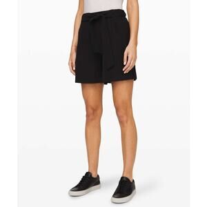 LULULEMON Noir Short 5.5” Womens 4 Black High Rise Pleated Elastic Tie Waist