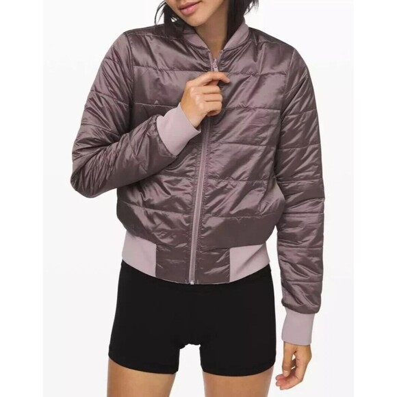 Up for sale is this brand new, reversible bomber jacket by Lululemon. Perfect to lock in the heat and protect from the light rain. Two-way stretch, water-repellent Swift fabric is lightweight and durable. Prima-soft insulation offers heat retention. pockets on both sides. Hidden media pocket.