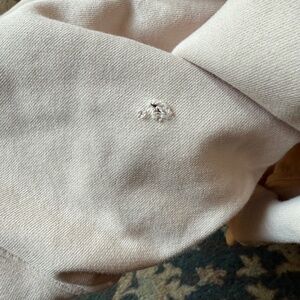 There is a small rip on the backside, down near the bottom where I caught the sweatshirt on the front door