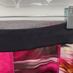 LULULEMON Pink,Maroon, and White Pattern Shorts Side Pockets Black Elastic in W
