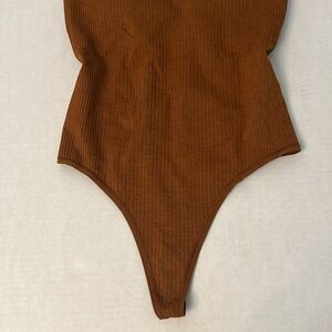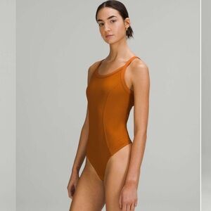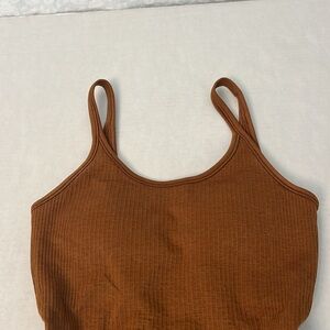 Size 2 Lululemon Ribbed yoga bodysuit in butternut brown New like condition no tags. More item description in last pic. Please check out all pics/ measurements and comment below with any questions