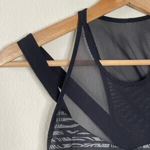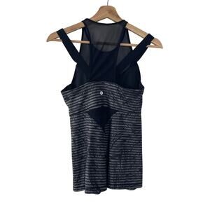 LULULEMON RUNNING IN THE CITY TANK STRIPE BLACK GRAY MESH BRA top size 6