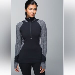 LULULEMON Race Your Pace 1/2 Zip Black & Gray/ Coco Pique Black Top Blouse -Sz 4
