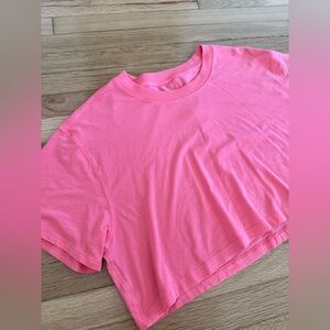 LULULEMON Raspberry Cream Cropped T-Shirt. Not sure size but think it’s a 6. Excellent condition. Smoke & pet free home.