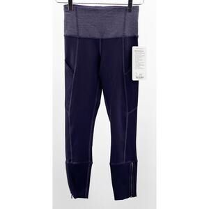 LULULEMON Rebel Runner Crop Legging Grape Stripe Zipper Athleisure NWT Size 2