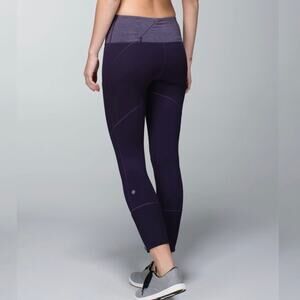 LULULEMON Rebel Runner Crop Legging Grape Stripe Zipper Athleisure