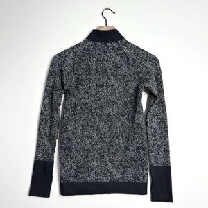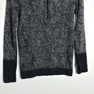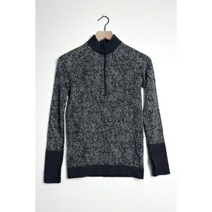 - Keywords: long sleeves, thumbholes, half zip, pullover, black and white, high neck, running, slim fit