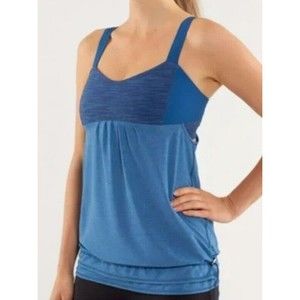 LULULEMON Run Back On Track Tank Limitless Blue Shelf Bra Drawstring Womens 6