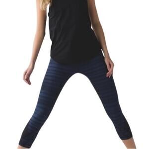 LULULEMON Run Crop II Full-On Luxtreme Mesh Legging 8 Navy/Black Sporty Athletic