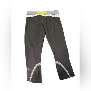 LULULEMON Run Inspire Crop Grey Angel Wing Slalom & White Quiet Stripe Size 8/10