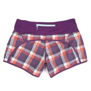 LULULEMON Run Speed Short 2 Way Stretch Wheezy Check Heathered Berry Yum Yum 4