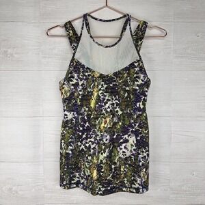 LULULEMON Running in the City Tank Top Women Size 6 Floral Mesh Green Yoga Gym