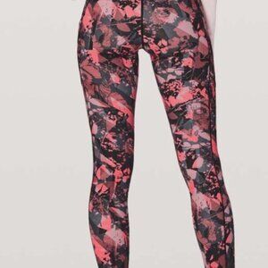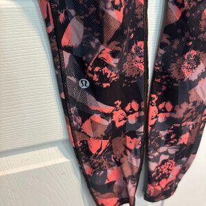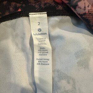 LULULEMON SPANDEX YOGA CAMO ABSTRACT LEGGING SIZE 2-FRONT CORD CLOSURE NWOT-BACK ZIP-FULL LENGTH