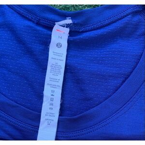 LULULEMON SWIFTLY TECH CREW blue SHORT SLEEVE SEAMLESS T SHIRT TOP sz 14