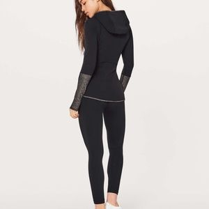 Designed for: Yoga, Thumbholes, Tight fit: Lets you move without restriction, High neck: High neck helps keep you warm, Hip length : Not too long. Not too short—just right. Sold out very quickly and in my opinion is one of Lulu's most flattering pieces.