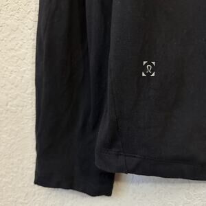 The LULULEMON Surge Warm Shirt is a versatile and comfortable long sleeve tee designed for performance in training and casual wear. Made from a lightweight, breathable knit fabric with a crew neck and pullover closure, this black shirt features a solid pattern with a logo accent. It offers a stretchy and athletic fit, perfect for outdoor activities and sports in the summer, fall, and spring seasons. Easy to care for with machine washable instructions, this Lululemon shirt is ideal for gym training, running, and jogging.