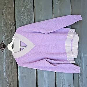 Alpaca Wool-Blend V-Neck Pullover Heathered Digital Lavender sz M Women's