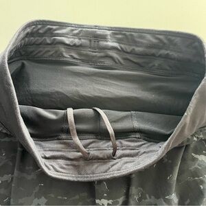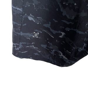LULULEMON T.H.E. Short Luxtreme Liner 9in in The Elements Cyberspace Black. quick dry. no-bulk performance. woven for strength. four-way stretch. sweat-wicking. Built-in liner : Light Luxtreme liner is sweat-wicking and four-way stretch. Hidden pockets: Hidden media and coin pockets. Gusset: Sweat-wicking, breathable fabric in the gusset helps keep you cool. Generous cut: For room through the butt and quads. Size Small.