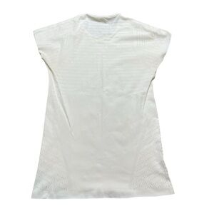 LULULEMON Time Warp Seamless Shirt Color: Cream / White Stock photos are used to show style only. Estimated Size 8 Pit to Pit: 16" Shoulder to Hem: 26" Style W3J06S Create a one-of-a-kind short sleeve tee that feels weightless, doesn't chafe, and gives us room to breathe when we're on the run? Challenge accepted. We engineered this shirt with lightweight fabric and plenty of ventilation for airflow on the go. Mission accomplished. This technical fabric is designed with strategically placed ventilation for maximum airflow Preowned in good condition Very light hard to notice mark on front right near neckline - see photo