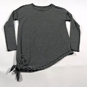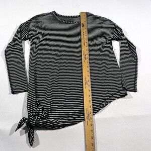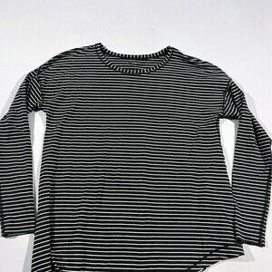 LULULEMON To The Point Long Sleeve Black Asymmetrical Tie Striped T-Shirt Sz 6