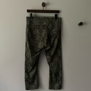 LULULEMON WONDER UNDER CROPPED GREEN SNAKE CHARMER PRINT LEGGINGS SIZE 10