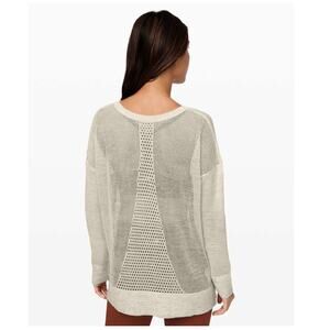 LULULEMON Well Being Linen Blend Open Knit Pullover Sweater Heathered Muslin M