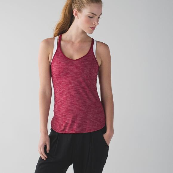 LULULEMON What the Sport Singlet II Tank Top Heathered Cranberry Ruched Size 6