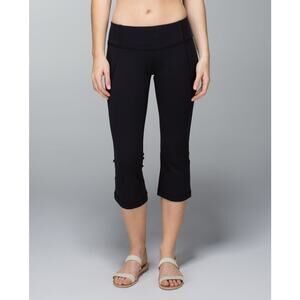 LULULEMON Women's 6 Black Gather & Crow Crop Pull On Stretch Yoga Legging Pants