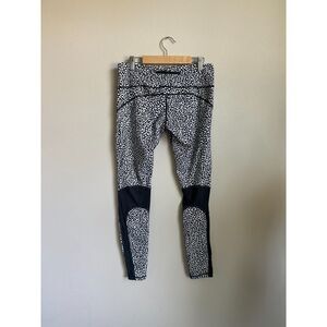 LULULEMON Women's Black White Inspire Zipper Pocket Sheer Panel Leggings Size 10