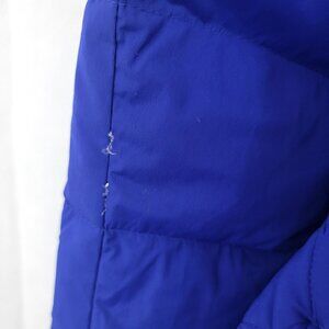 *Subtle discoloration outside collar, some seams have feathers starting to poke out*