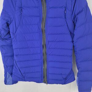 LULULEMON Womens Jacket Sz 4 Fluffed Up Goose Down Pigment BLUE Full Zip Running