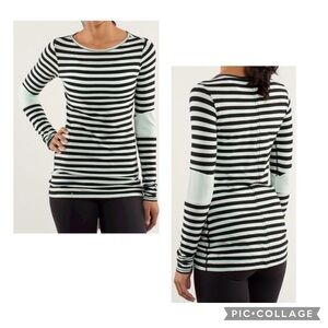 LULULEMON Women’s Sea Stripe Mint Moment DEVITION Long Sleeeve Tee Shirt Size 4