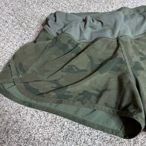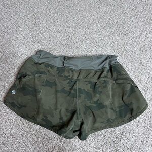 LULULEMON Womens Shorts Size 8 Black Green Camo Speed Up 2.5" Lined Zip Pocket