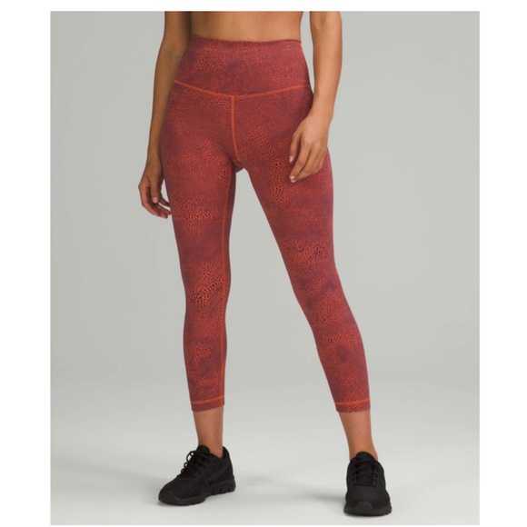 LULULEMON Wunder Train HR Crop 23” Crackle Glaze Vintage Orange Larkspur Size 2