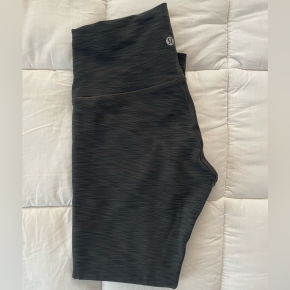 Tight fitting with Lululemon’s signature moisture-wicking Everlux fabric. Squat-proof design that’s ideal for workouts. Great condition, minimal pilling as noted in the pictures. Color is graphite grey and black.