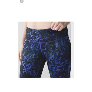 LULULEMON Wunder Under Crop Leggings Full-On Luon Purple Iris Floral Black Sz 4