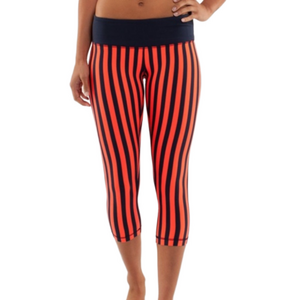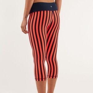 LULULEMON Wunder Under Crop Sea Stripe Navy Coral Leggings Sz 10 pants