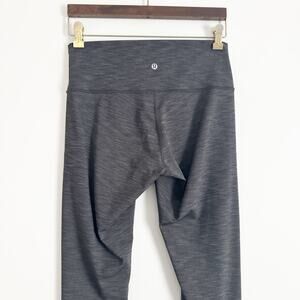 Heathered black 'Wunder Under' crop leggings by Lululemon.