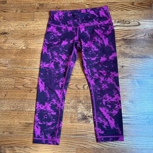 LULULEMON Wunder Under II 21 in tie dye crop leggings breezie plum black size 6