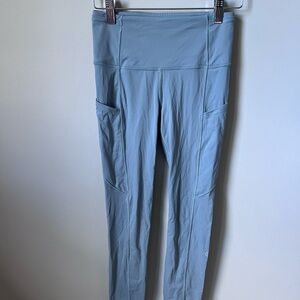 Stylish light blue high-waisted leggings. Perfect for workouts or casual wear.
