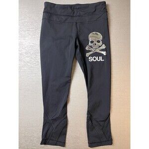 LULULEMON x SOULCYCLE Run Inspire Crop Pants Black Green Camo Skull Size 4 EUC