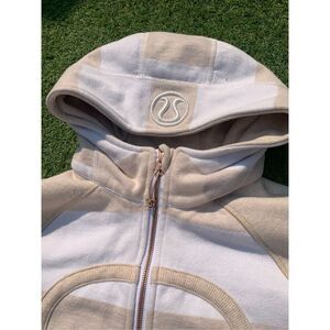 LULULEMON SCUBA cashew white striped FLEECE LINED HOOD HOODIE SWEATSHIRT JACKET