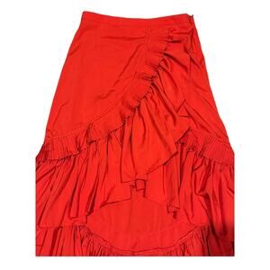 LULUMARI Red Overlap Maxi Frill High Low Skirt size medium
