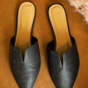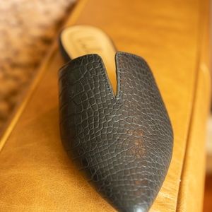 Jaelyn Black Crocodile Embossed Pointed-Toe Slides size 9