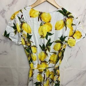 LULU'S A La Tart Lemon Print Wrap Mini Dress - D31