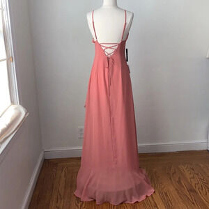 LULU’S Ada Lace Up Back Bohemian Maxi Slip Dress in Rusty Rose Size Medium