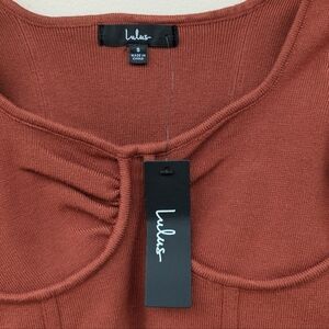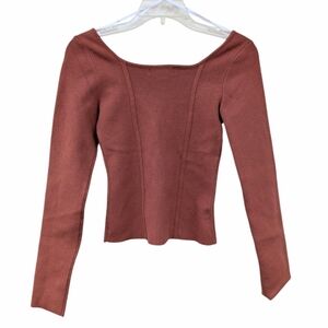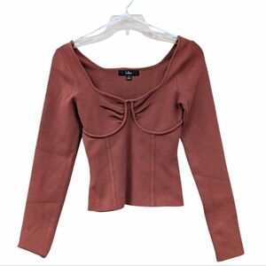 LULUS Aesthetic Essential Rust Brown Ribbed Seamed Long Sleeve Top NWT