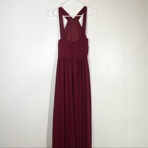LULU’S Air of Romance Maxi Dress Bridesmaid Wedding Guest Burgundy Red Small