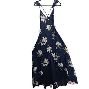 LULUS All Mine Navy Blue Floral PrintHigh-Low Wrap Dress size M Resort Vacation